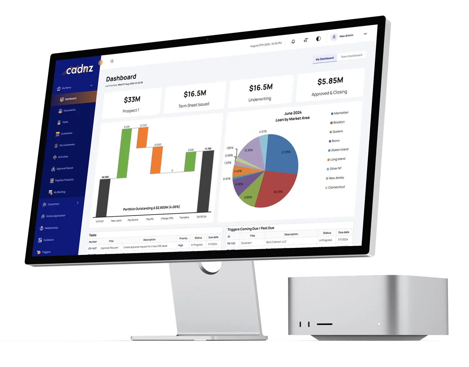 Financial institutions operate on complex, siloed systems. Cadnz automates everything from originations, risk management, & customer servicing to compliance & reporting – on one platform – enabling you to achieve peak productivity & profitability. Cadnz empowers financial institutions to streamline operations, boost productivity, and manage risk with real-time data.